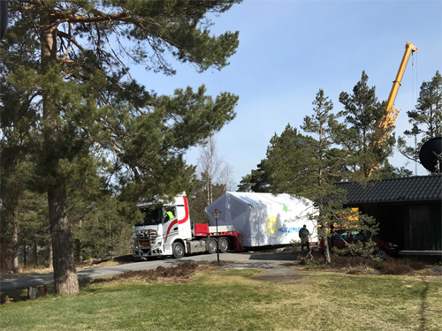 På tal om skoj och avkopplande (i alla fall att se på) så har grannen just fått ett hus. Nuförtiden kommer de på trailer minsann och det var ett ganska stort ekipage! Tur med vädret har dom också.